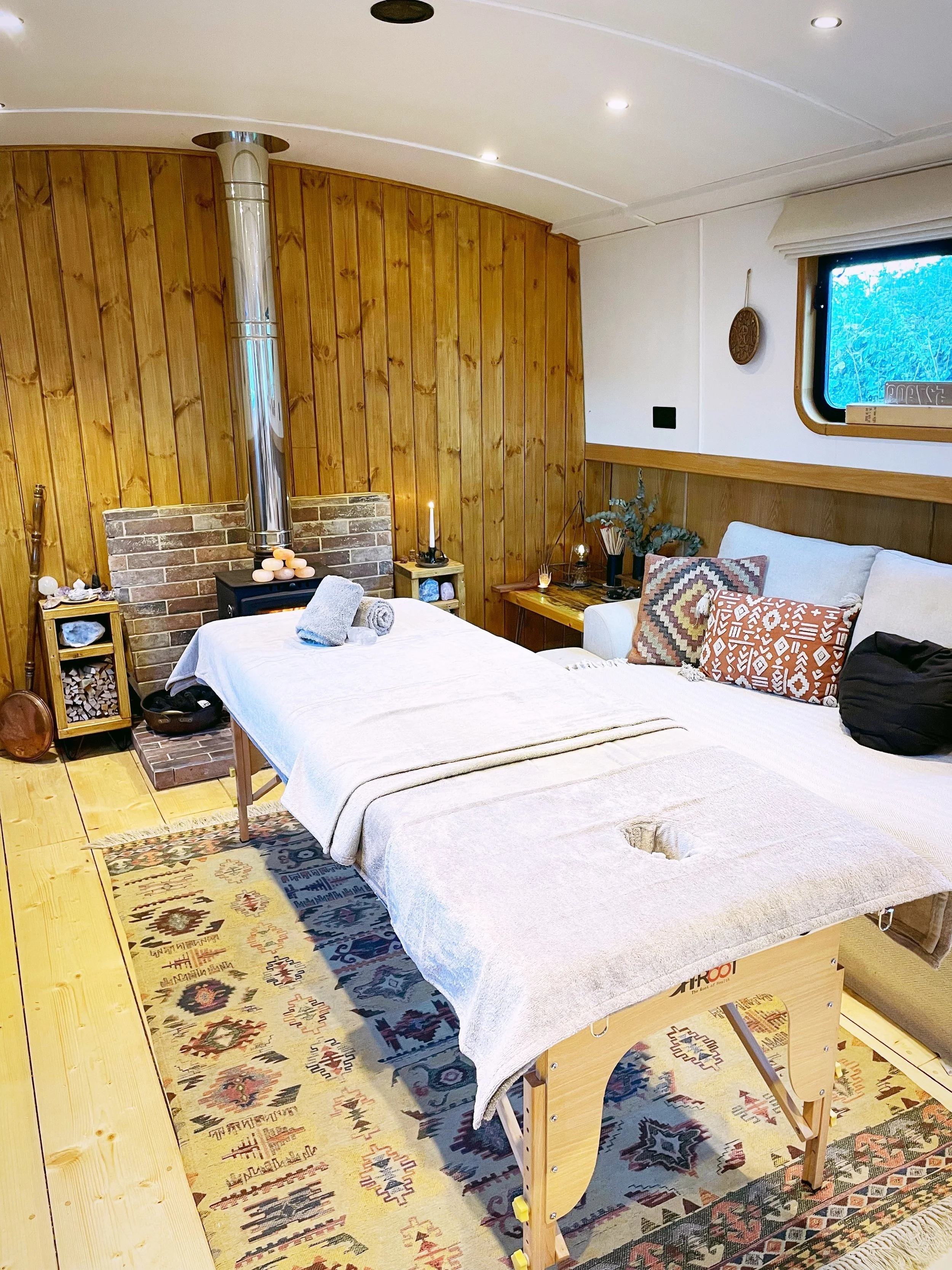 Holistic therapies take place aboard a peaceful canal boat, moored in a quintessential English village. Surrounded by the natural world and the gentle movement of water, this unique setting offers a calming and restorative space for therapeutic work.